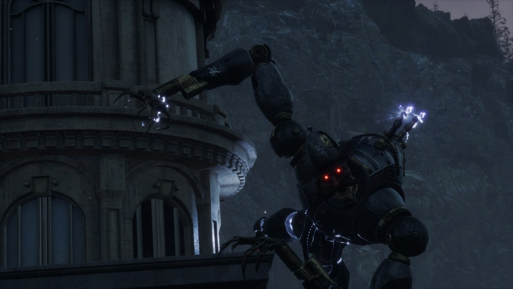 Boss reveals continued to be exceptional as the game progressed. Whether it was the Scrapped Watchman clinging to the side of a building like a giant spider while his head spun upside down or the King of Puppets becoming infuriated after his offer to share a dance gets rejected, I was usually cracking a smile at the creative displays before each showdown. Adding to my appreciation of Neowiz’s thorough artistic direction were the abundant details present in the environments I passed through, especially in different blocks of the city where the effects of Puppet Frenzy and the Petrification Disease (caused by tainted Ergo, the strange mineral substance used to power Krat’s puppets) were made most evident by their juxtaposition to pockets of preserved architectural elegance. Areas outside and underneath Krat weren’t filled with as much to admire.