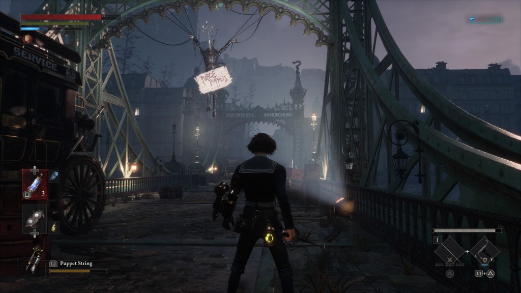 Another feature I’d like to credit Neowiz for is the chance to refill depleted Pulse Cells (aka Blood Vials or Estus Flasks) by landing hits on an enemy. This tempts the player to either be more aggressive or tentative as they struggle to earn another heal. There weren’t many occurrences where this mechanic assisted me in defeating a boss, because by the time I thoroughly learned each fight, I could typically finish with at least one unconsumed Pulse Cell. However, it did help with the process of learning the bosses and does provide those glimpses of hope that I criticized the game for barely including earlier. Finally, the Puppet Arm (which is conceptually comparable to the Shinobi Prosthetic in Sekiro) adds optional assistance during combat that can be easy to overlook for how supplementary it is in the grand scheme of things. Several of the available arm attachments can be used to inflict elemental damage on an enemy, like shooting acid or fire at them. There’s also a shield which did mitigate some of the frustration from failed parries, as it provides a wider parry window but also takes a couple of crucial seconds to deploy. The most inventive arm is the Puppet String. This is acquired quite early in the game and allows P to either pull enemies toward him or pull himself toward enemies. Upgrade it enough and P will even initiate a powerful aerial attack after grappling onto crazed puppets and diseased monsters. I genuinely had fun strategizing with the Puppet String. I used the other arms only out of necessity against certain enemies with low elemental resistances.