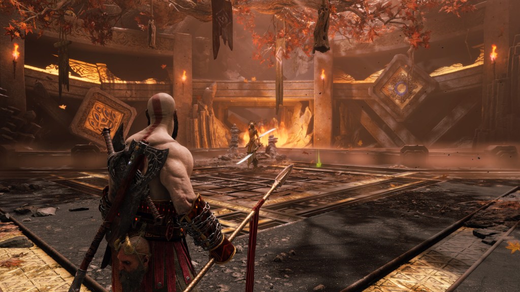 Okay, I’ve spent enough time picking on Kratos for trying to be a good guy. Now I’d like to discuss my journey through Valhalla and why I feel an expanded version of this game mode could have been a suitable replacement for the entirety of Ragnarök. It all comes down to the one big bad word in gaming: BOREDOM. After cruelly punishing us with a lackluster story that suffered greatly from the absence of Cory Barlog’s personal influence, torturous Atreus segments and tediously slow backtracking and traversal, Santa Monica Studios has finally shown mercy with their allowance of fun. If you’ve also lost interest in the wimpy, whiny Kratos who second guesses every throw of his axe, then you’ll remain slightly peeved by the story beats in Valhalla. However, it is at least far easier to ignore those beats while you roleplay regular destruction, quickly going from one run to the next, resetting each time you either die or defeat the final boss. The final boss battle is really a sparring match against Tyr, who cycles between different historical weaponry as he tests Kratos’ will to reflect, accept and change (cue the eye roll).