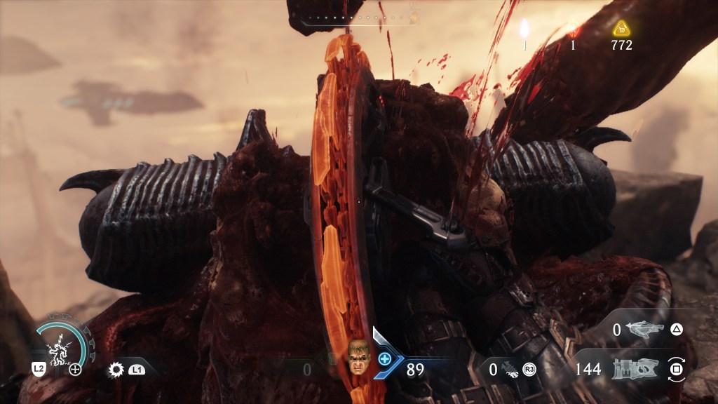 The Dark Ages made me question my own standards for bells and whistles. I like to think I’m a simple gamer, one who prefers to jump in and play rather than admire a bunch of small touches that don’t make much of a difference to the overall experience. . . but surely that’s not always the case. Enter The Dark Ages. When I laid eyes on the rather bland main menu, with none of the customization options Eternal introduced, I was immediately underwhelmed. Something felt lacking here, creating a perception of discreet regression that only became more and more validated as the game unfurled. Also absent (for the most part) are glory kills. Glory kill animations were a risk since day one, as they threatened to continually interrupt the gameplay for the sake of theatrics. However, id Software implemented them in such a smooth way, while also adding practical incentives to performing them, that glory kills became a standout feature in Doom’s revival. Though we get a few cool animations with the shield saw (if finishing a demon from above) a new melee system replaces the swift, head-splitting brutality from before with punch, punch, kick, giving further credence to the notion that id Software might not have had as much fun making The Dark Ages as they did with 2016 and Eternal. It’s almost as if the Slayer’s fate in this game as a slave to the Makyrs is an allegory for id Software’s operations under Bethesda. I could be totally wrong, but it feels as though id Software didn’t really want to make another Doom just yet. The distinct personal touches that went into the other games are either regurgitated here in a more slapdash manner or have simply vanished.